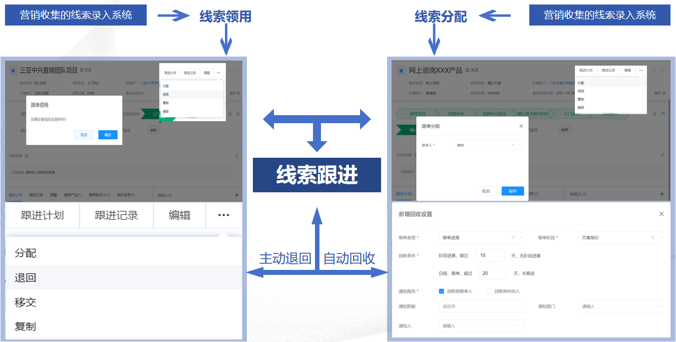 - 線索池自動分配回收,促進線索資源流動,促進轉化