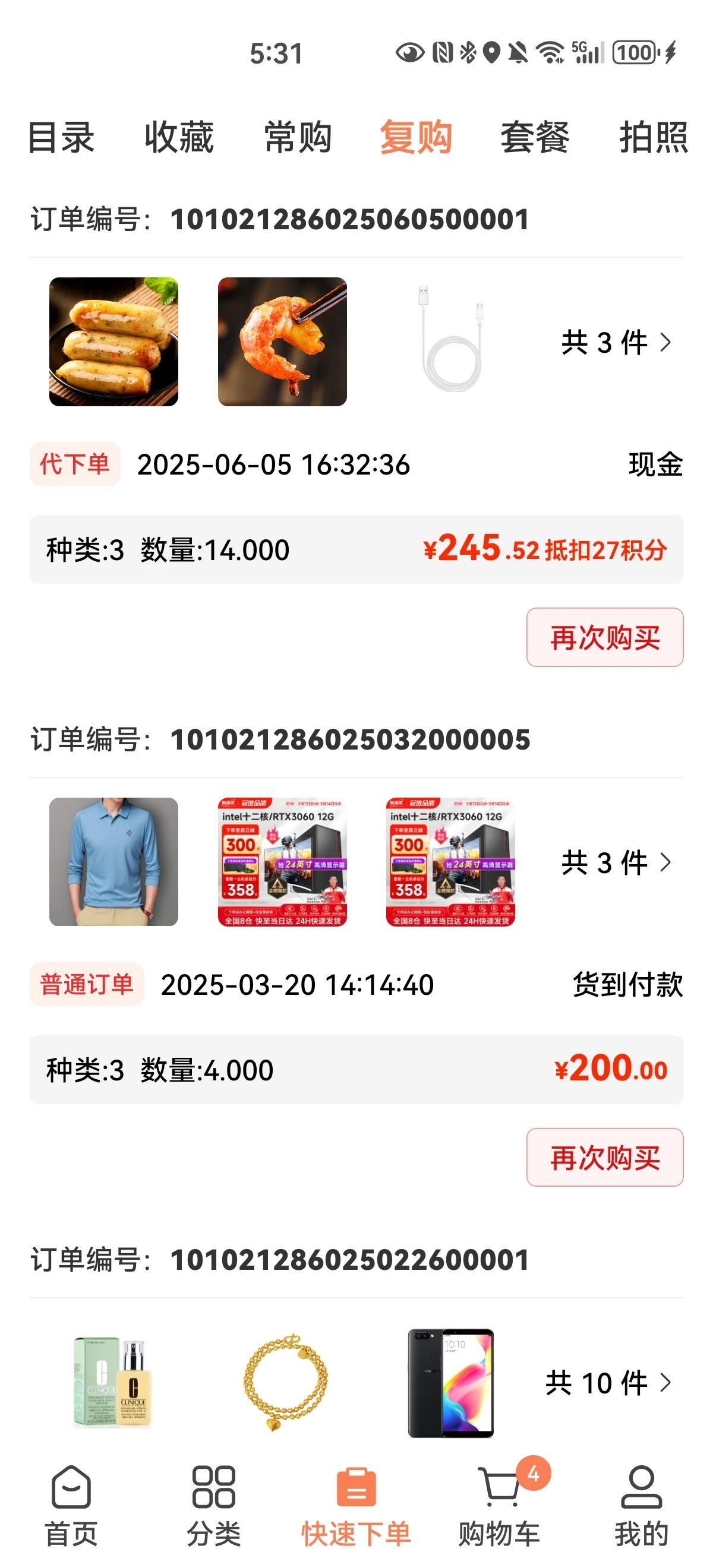 快馬商城客戶一鍵復(fù)購和套餐下單界面局部截圖