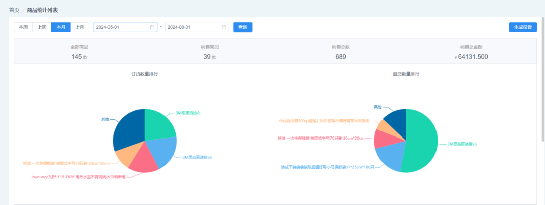 提供多種統(tǒng)計報表。在商城后臺可查看商品銷售情況以及客戶下單和退換貨情況的報表,方便管理層對商城的營銷方案做出規(guī)劃或者調整。