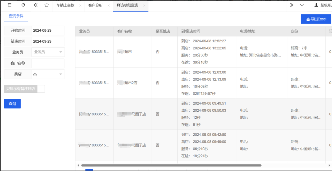 3、業務員通過手機端完成進店拜訪記錄,主管可通過后臺查看拜訪明細。