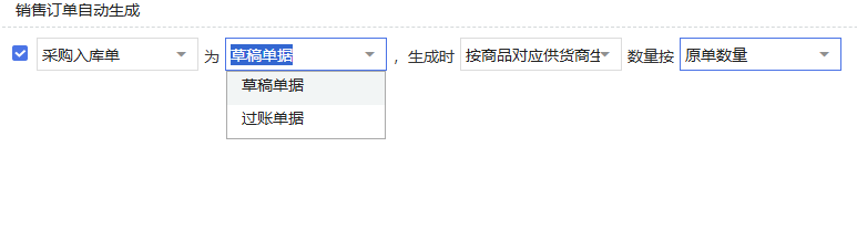 當(dāng)配置為“采購(gòu)入庫單”的時(shí)候還能決定是否生成為草稿或過賬單據(jù)。