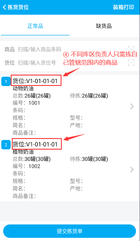 1、紙單拿貨,單子上只能顯示出需要發貨的商品,但是每個商品在哪個貨位上,只有老員工清楚,新員工需要一段時間來記憶商品的存放位置,這就導致找貨慢;而且倉庫很大,不同庫區之間跨度較長,一張揀貨單有多個庫區的產品時,人員揀貨要跑整個庫房,4000+平方的庫房,每天微信步數2W+,太多時間花在走路上。