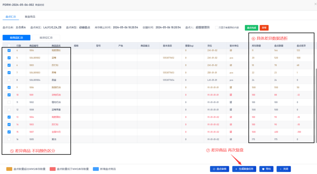 員工只去盤點今天庫存數量發生改變的商品,加大盤點頻次來實現準確盤點。每次的盤點數據庫管親自審核,并且可以看到盤點數量與庫存數量的對比差異圖,針對比較懷疑的盤點數據,可以再次進行復盤,加大盤點準確率。