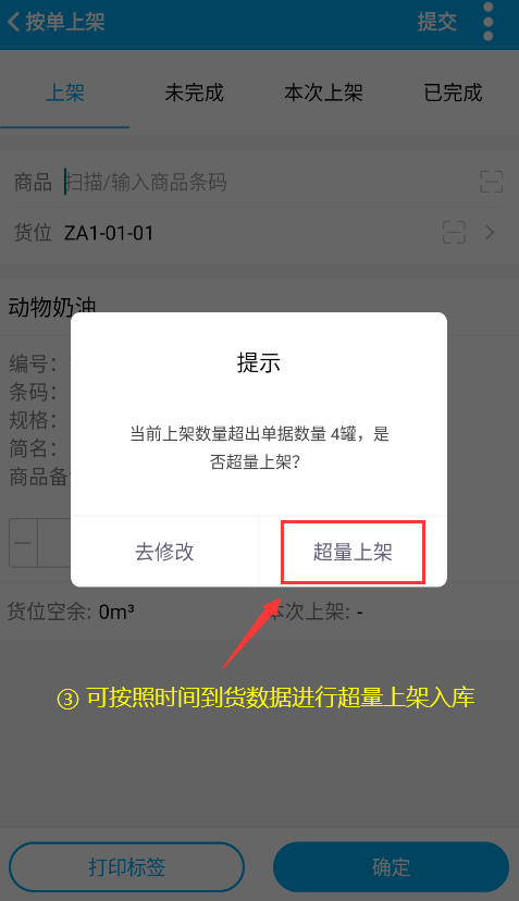 公司采購向供應商下訂單,待貨送過來后,會存在到貨數量與實際下單數量不一致的情況,此時在物聯通WMS上架的時候,可以根據實際到貨數量直接修改單據,并且直接進行過賬,這樣就省去了倉庫人員與采購之間溝通數量差異的問題。